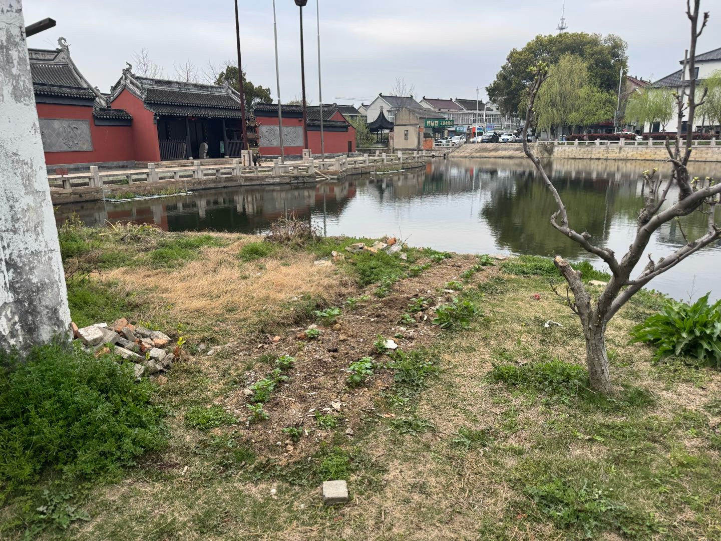 好好的草坪又开垦种上菜了,树也不知道被哪户缺德人家给砍了,哎
