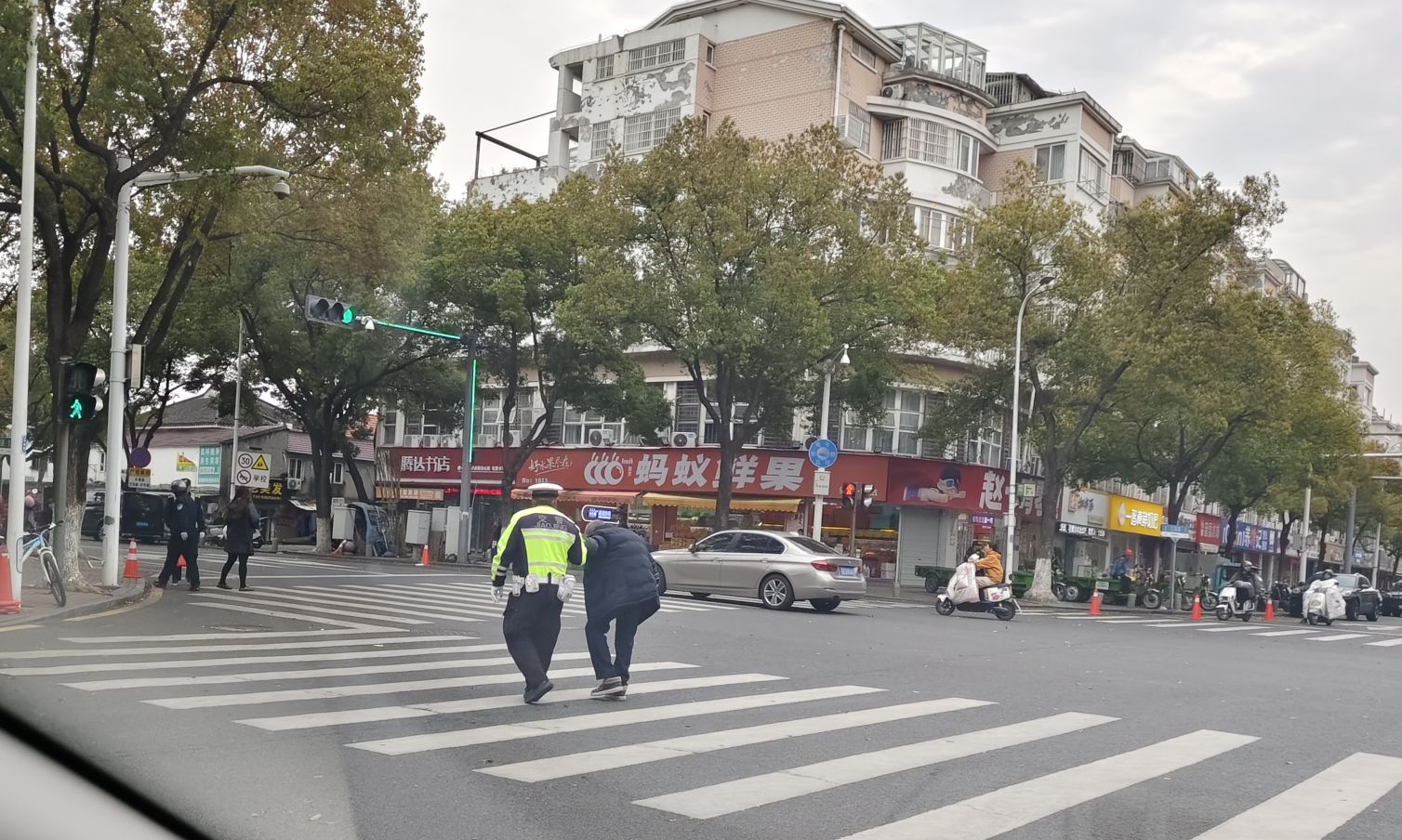 今晨路过,看到一位年龄很大、走路不便的老年人,颤颤巍巍欲过马路,又不敢。警察叔叔一看见就过来,拦住机动车,很自然地、下意识的搀扶老人过街