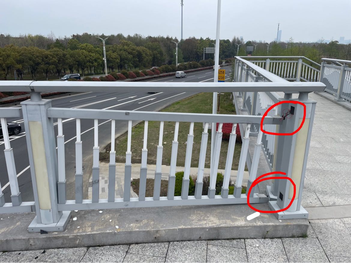 S230体育路跨线桥一处栏杆存在脱落风险,请有关部门重视