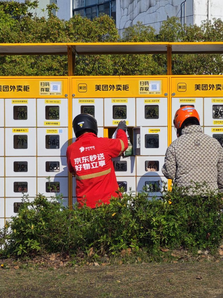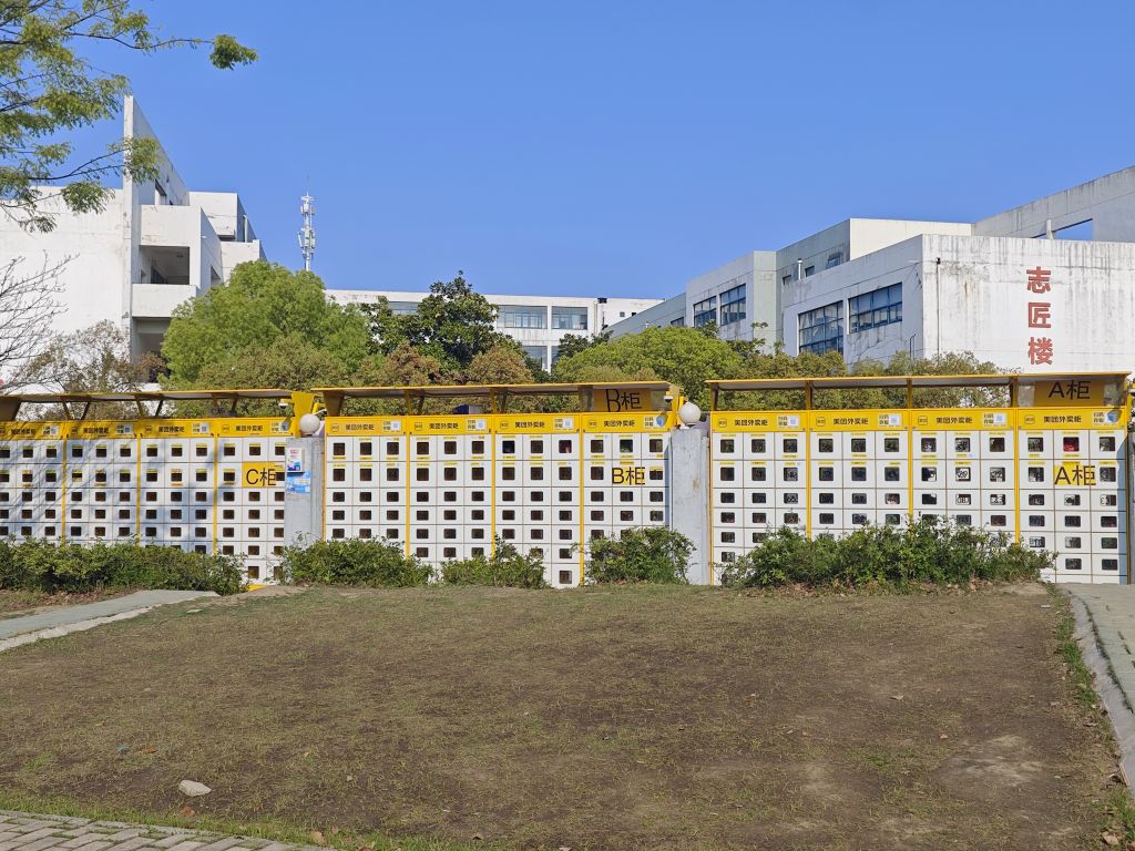 小哥放进去,学生从里面拿。