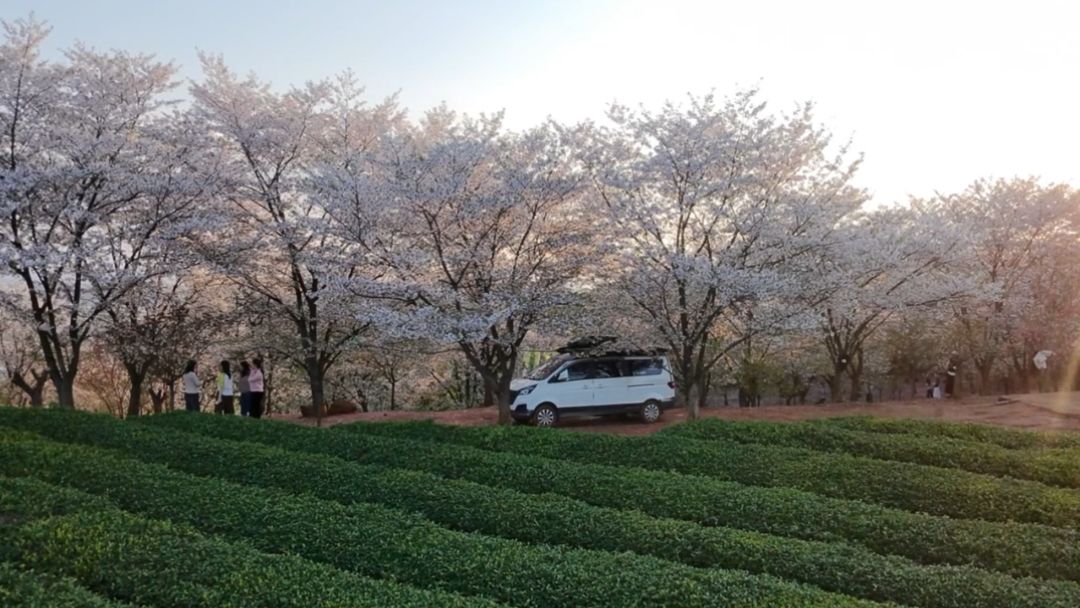 这里的妙处,在于樱花与茶园的搭配。茶树是深沉的,一年四季绿着,稳当当地伏在山坡上;樱花却轻灵,年年只绚烂这么十来天,开起来不管不顾的。一个在地上,一个在半空;一个常青,一个易逝——偏偏就凑在了一起,倒像是老成的兄长由着任性的小妹胡闹,包容着那份短暂的热烈。