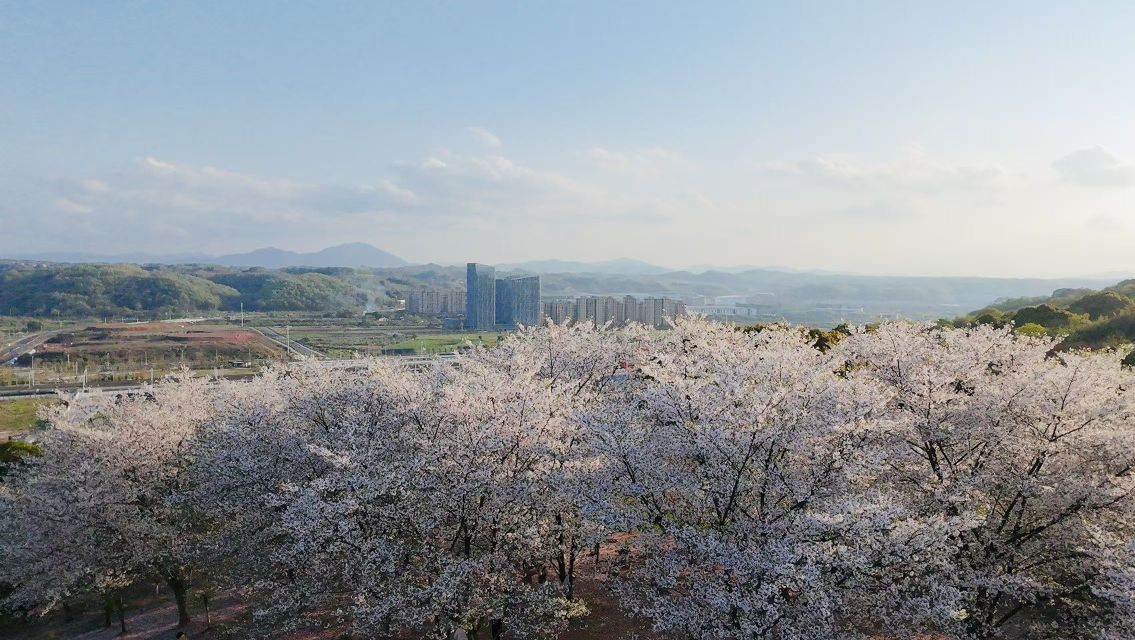 远处山峦叠翠,一层淡似一层,融在天边的薄雾里。空气中有茶园的清香,混着樱花的甜,淡淡的,并不袭人。偶有几个孩子在树下跑过,有个小姑娘穿着粉色的裙子,张开手臂转着圈,花瓣落在她的发上、肩上,她也不掸,只是笑。大人们在一旁看着,也不催,由着他们闹。这般情景,倒比花本身更让人觉着春意盎然。