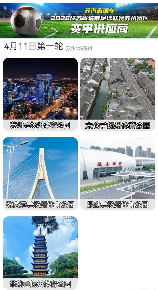 据了解,本次4月11日观赛直通车覆盖苏州大市各区域,多点同步发班,班次精准匹配,票价亲民实惠,严格执行车辆安全检测、驾驶员规范培训、全程调度管控,以官方保障、品质服务、安全有序为核心,确保球迷顺畅往返、安心观赛。作为苏州本土专业客运品牌,苏汽直通车始终以便捷出行、暖心护航为理念,深耕赛事交通保障、团体出行、文旅接驳等场景,用标准化管理、精细化服务、可靠化运力,助力城市体育赛事发展,传递城市活力与足球热情。
