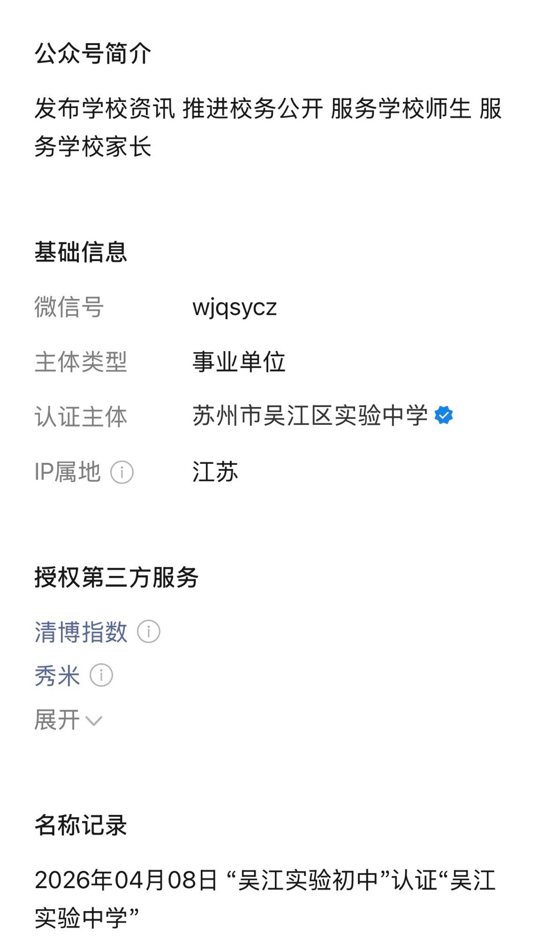 之前这边就有很多人得到消息,万公堤实验学校没了,幼儿园也不会开。学校准备改成吴江实验初中的新校区,然后吴江实验初中成立高中部,四星级,学园区星海中学的模式,刚看了下,实验初中的公众号名称也真的变了,从初中改成中学了。