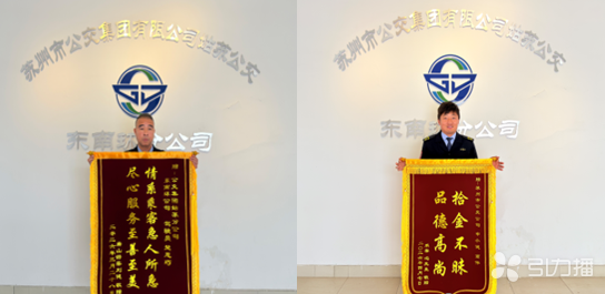 苏报记者吴涛报道讯:今天上午(4月10日),两面分别从唐山、扬州寄来的锦旗,同时送达苏州公交集团姑苏旅游公交定制83号线驾驶员楚恩巧、高伟手中,以最质朴的方式,为苏州公交的文明服务写下温暖注脚。