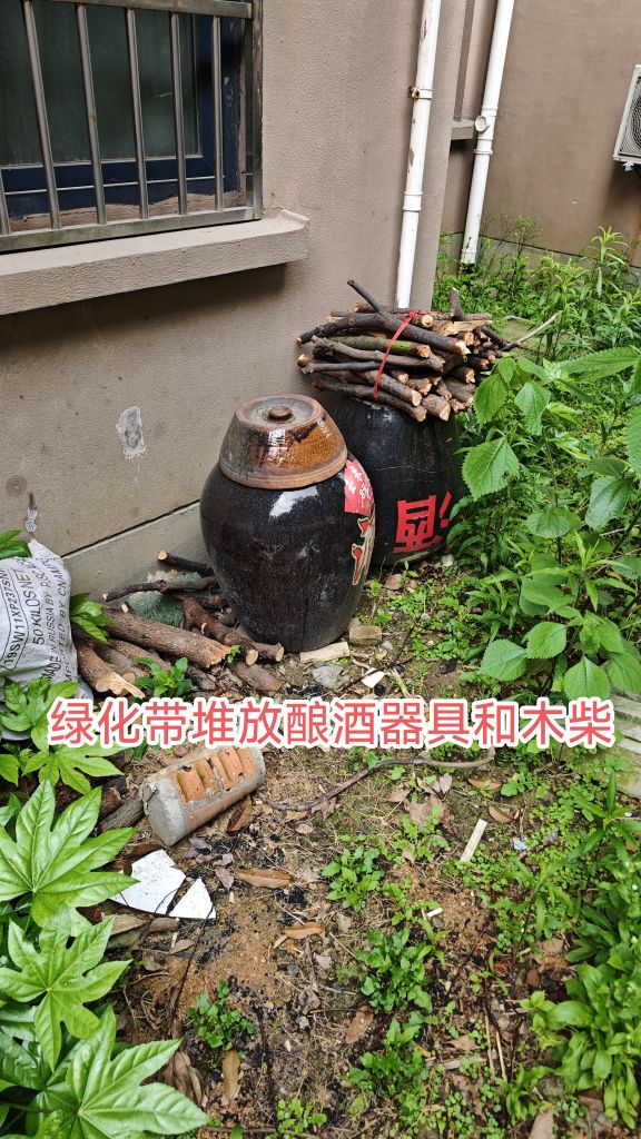 山湖花园弘雅苑49栋一单元车库私人酿酒作坊,在酿酒过程中破坏绿化带,铲除绿化,硬化绿化地面,绿化带里堆放木柴,在公共区域占地晾晒酒曲,在燃气管道附近生火酿酒,破坏绿化,违章搭建,占用公共路面,存在消防隐患。