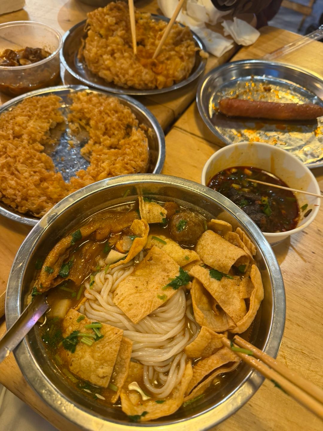 开了没多久,生意好得很,里面坐满了都坐到外面来了,据说正宗的螺蛳粉是不臭的,别说,这家还真不怎么臭