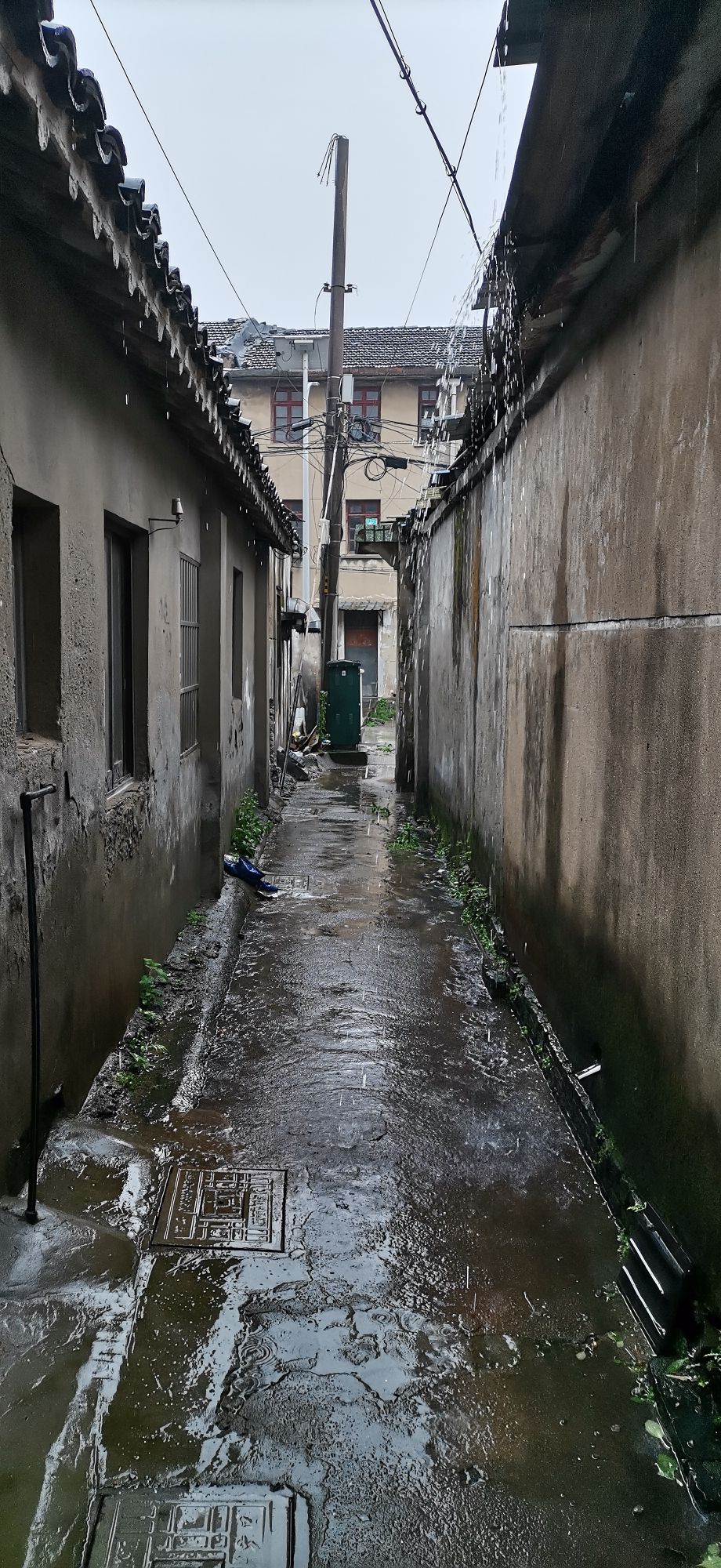 金海湾浴室东面弄堂是附近几十户居民进出通道,金海湾浴室在东面围墙搭建一些建筑物(原先该地是空地),上面用彩钢板,一直伸出围墙,下雨时形成大水,冲到路中间,无法正常通行,如果下大雨,打伞都会握不住,水冲刷力太大了。