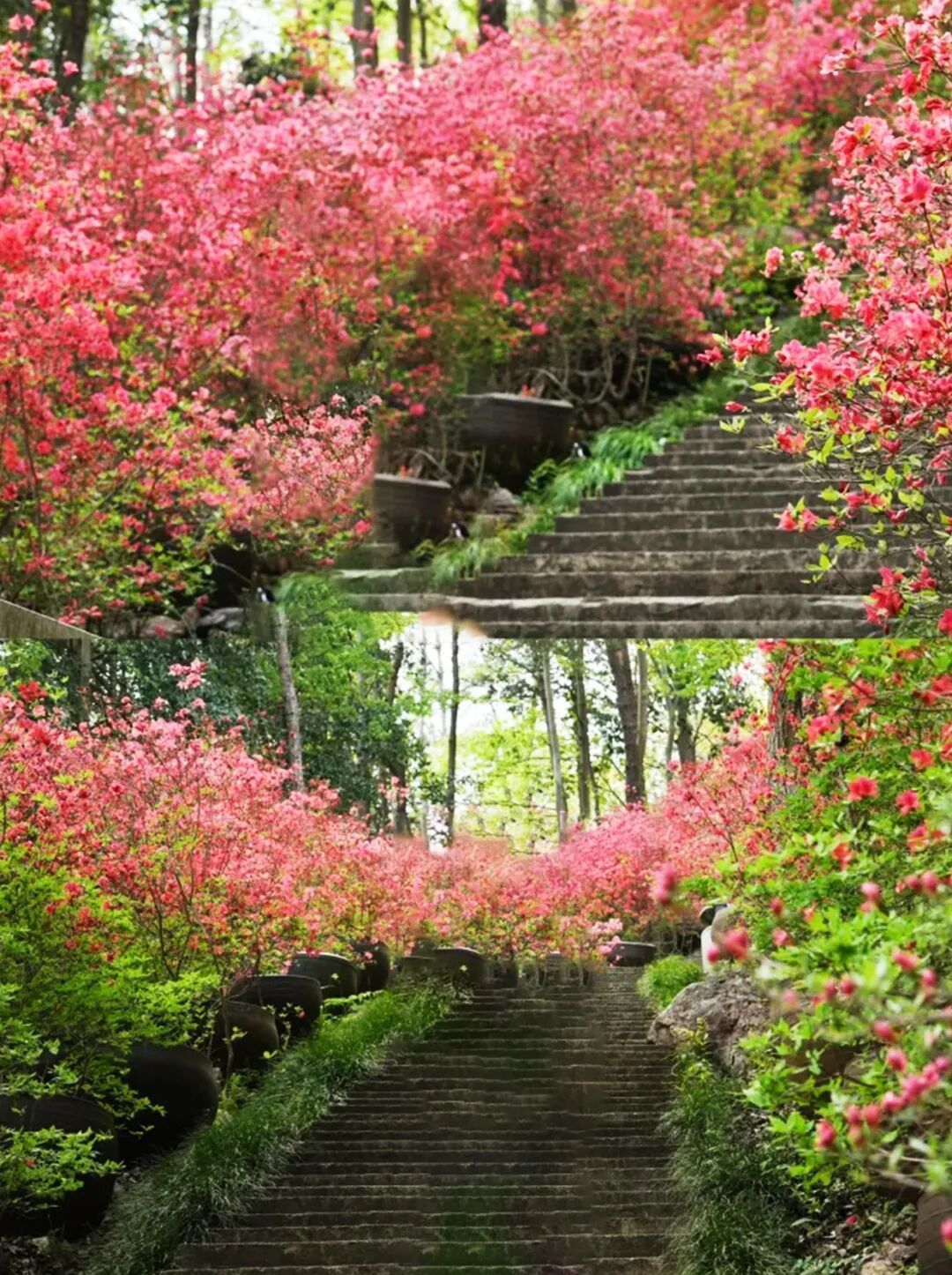 都说春雨生百谷,这时候的山最润、花最艳。而新昌大岩岗,正把这最后一抹春色,燃成了漫山遍野的红。