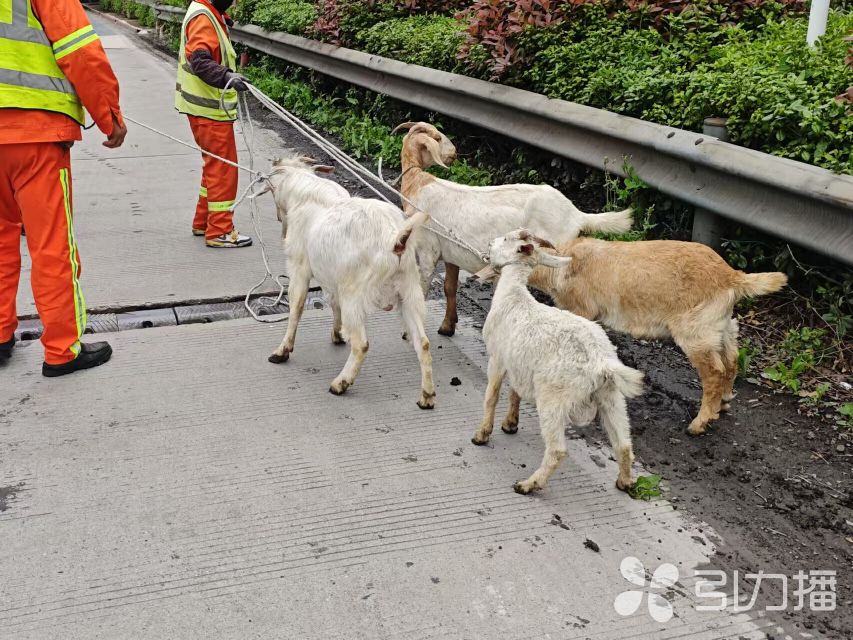 在等待养护支援的间隙,为防止羊群再次冲入车道核心区,丁婷屹带领班组人员化身临时“牧羊人”。她们压低声响、放缓脚步,利用围挡手势,小心翼翼地将四只羊逐步驱赶并围拢至护栏边缘的安全缓冲区域,并全程值守看护,严密控制羊群活动范围。