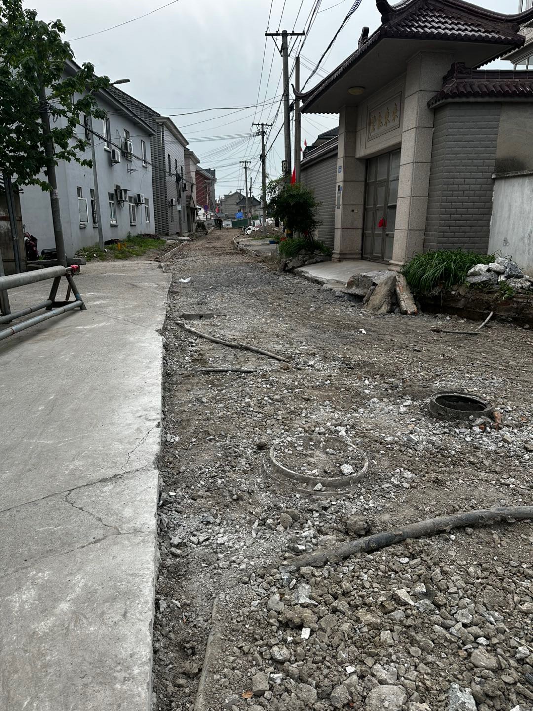 盛泽镇红梨湖村道重铺,已经挖好好几天了,一直没有进展,请问让村道两边的村民怎么进出?挖成这样,不抓紧时间修好,就这样挖了不管了吗?车子都无法开回家里,路边又没有停车位可停,请问是要让村民在天上开汽车吗?如果不想修路,请立刻马上恢复原样!